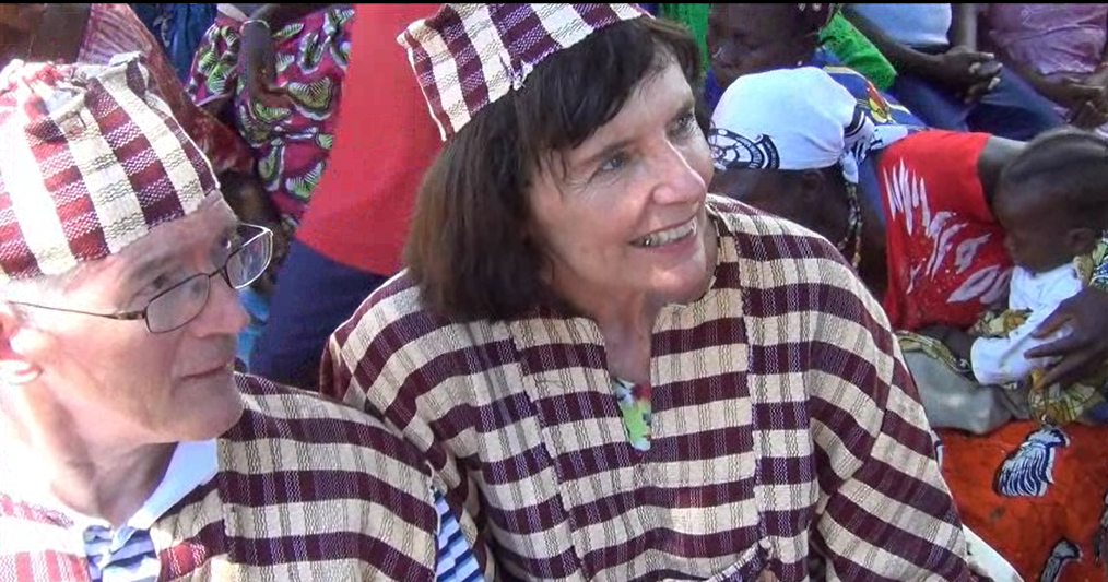 Farmers in Tagrin village celebrated the success of the rice production project by inaugurating Art as town chief. After a welcome procession, they dressed us in traditional chief outfits. Art’s name became Pa-kom-rabai, which means something like “head of chiefs.” Since it was ceremonial, the actual Paramount Chief didn’t object. In a patriarchal cultural, it was unsurprising when Suzanne was named Yabomposay, which means “chief’s wife.” It was an amazing experience with singing, dancing, and lots of food. Please give the videos a moment to load.